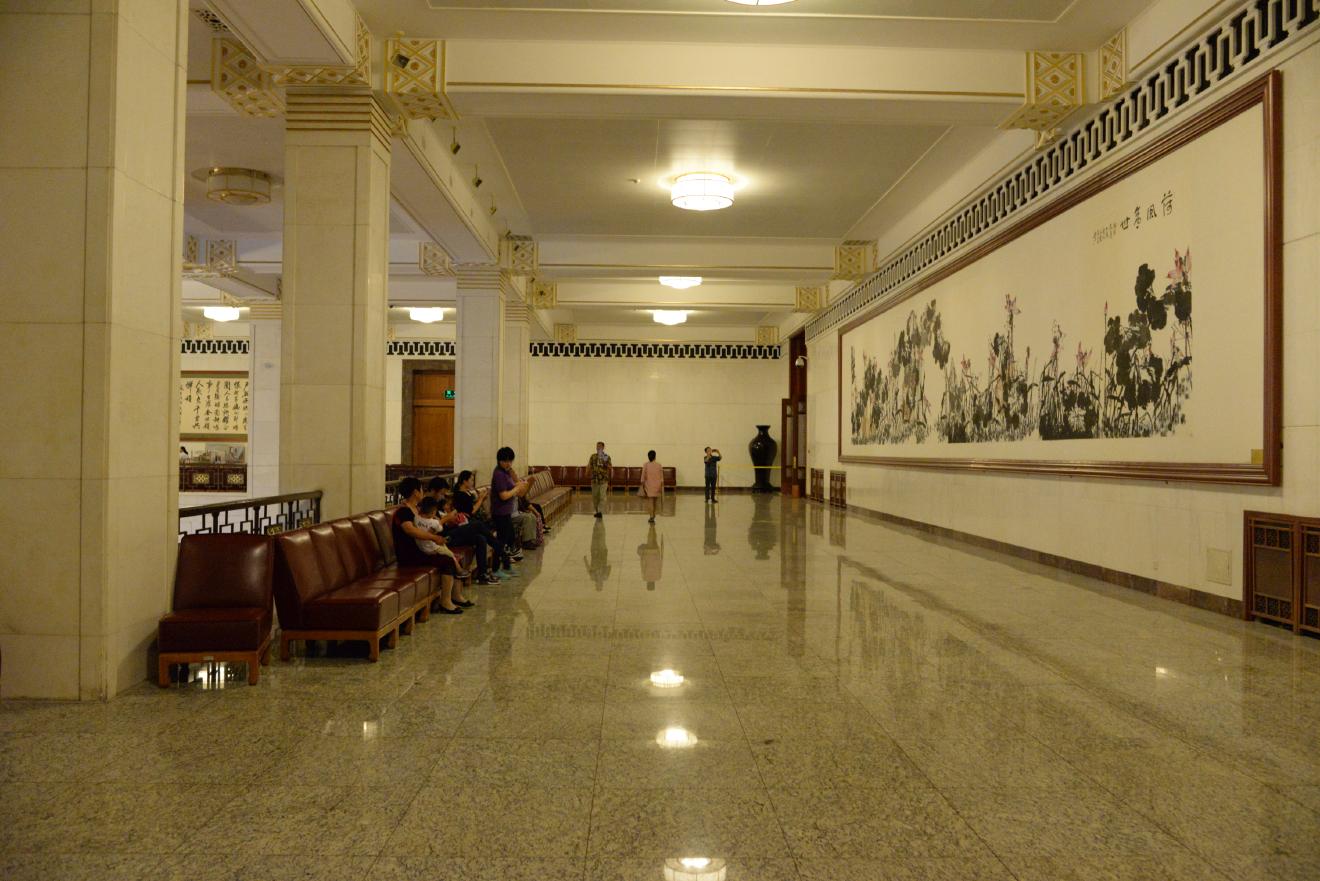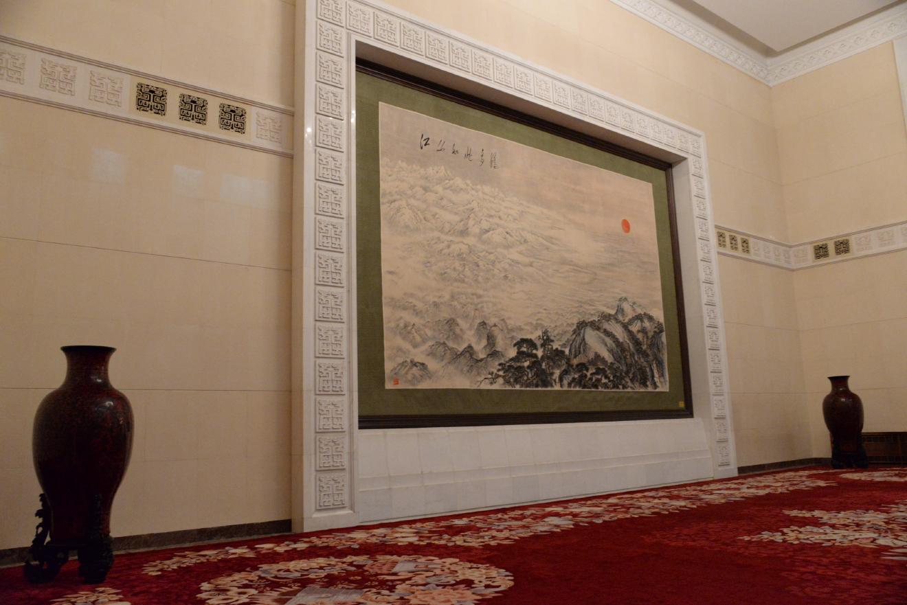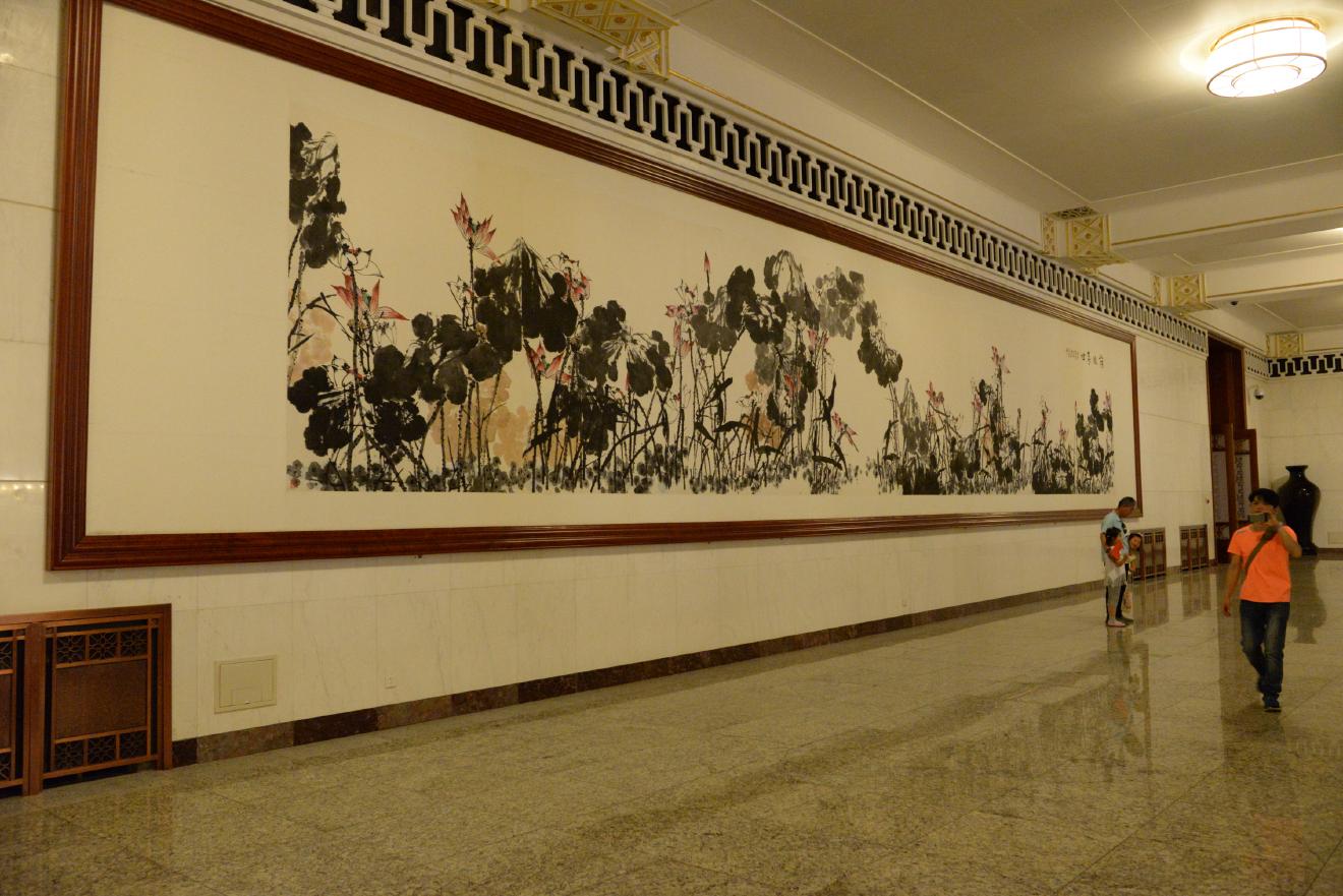 人民大会堂はさすがに外国の賓客を迎える場所だけあって、通路のあちこちに絵画や書、壺などが置かれています。