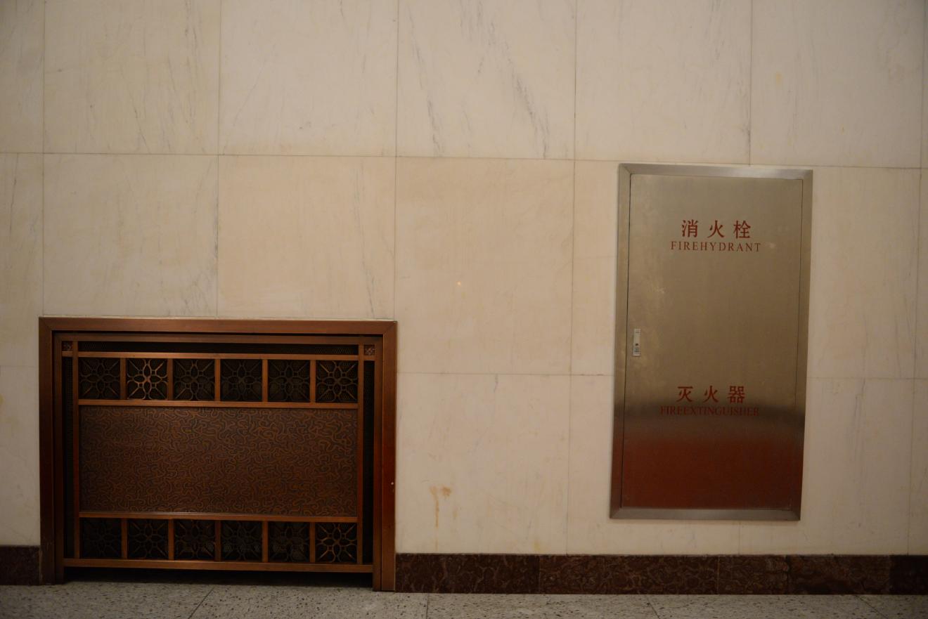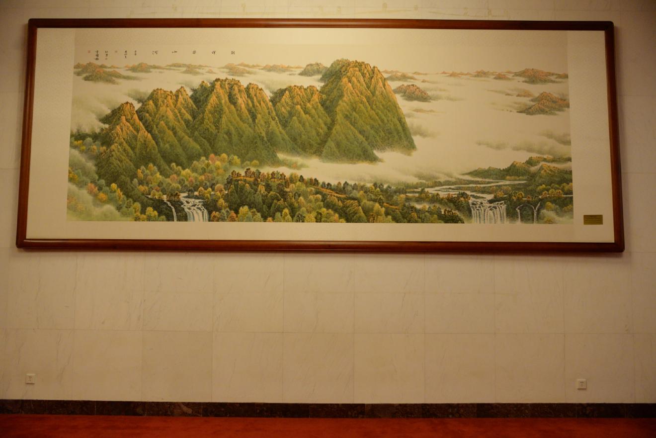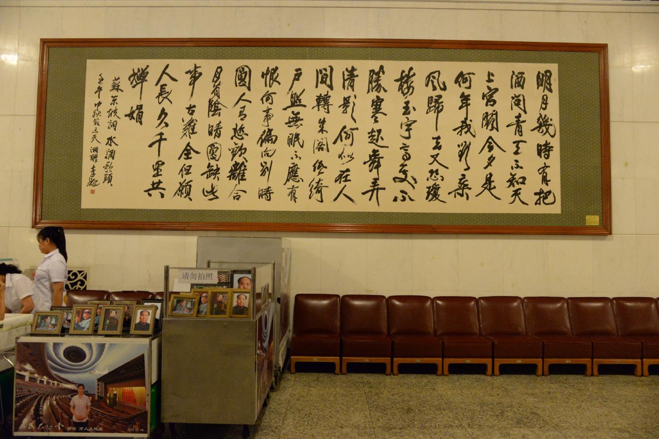 人民大会堂はさすがに外国の賓客を迎える場所だけあって、通路のあちこちに絵画や書、壺などが置かれています。