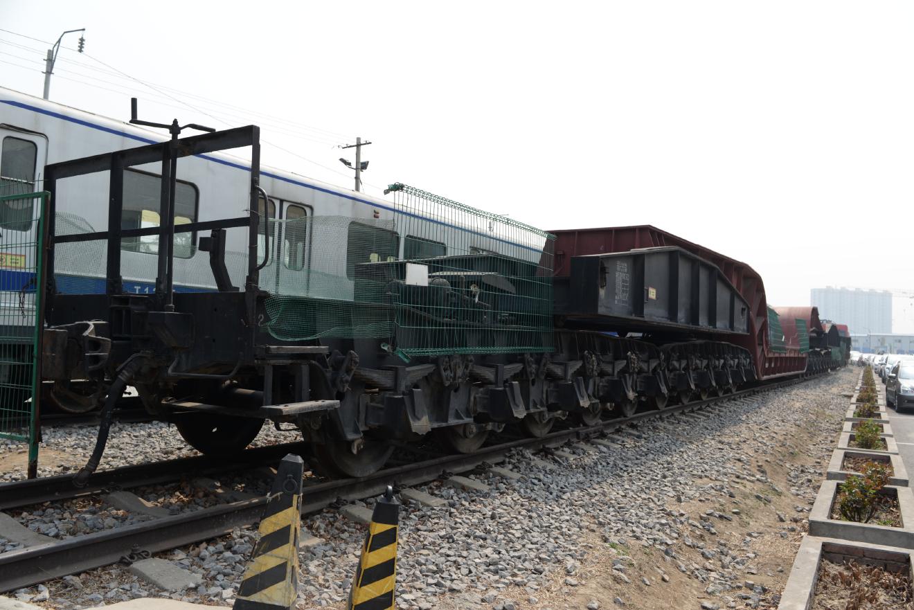 発電機など、大型貨物を運ぶ貨車です。