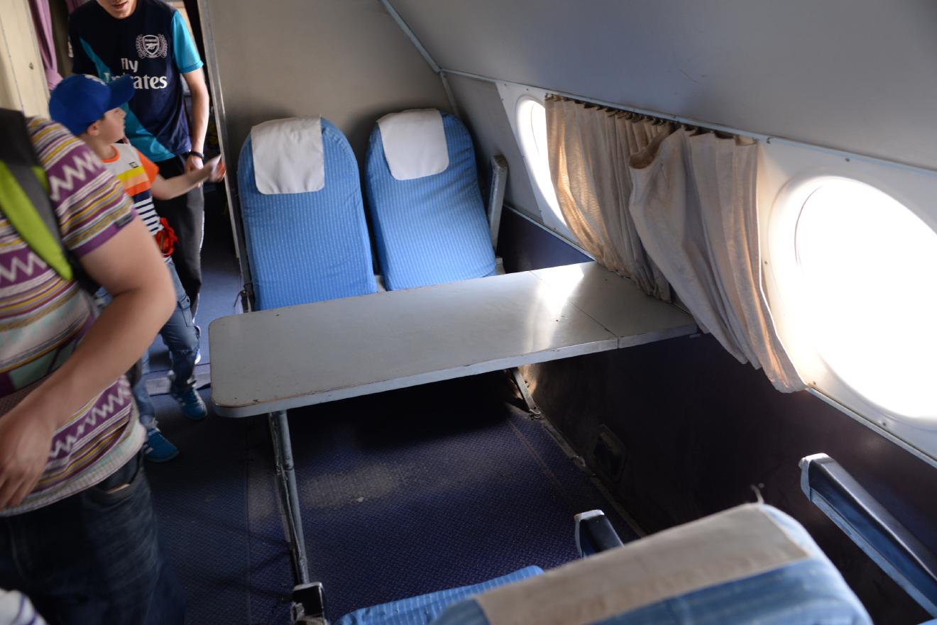 機内は古ぼけた感じがしますが、いたって普通の旅客機です。