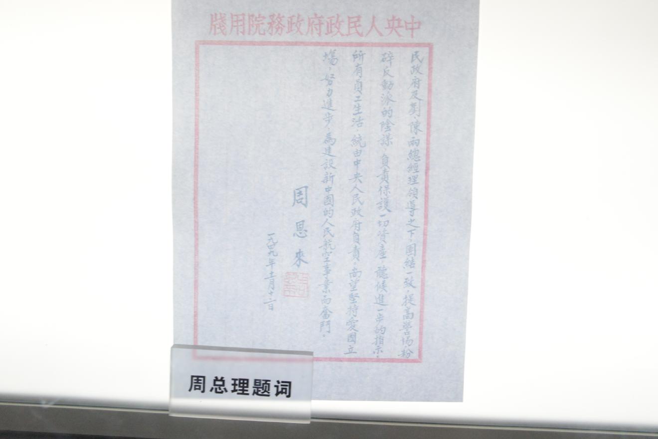 周恩来総理と在中国ソビエト代表が西郊飛行場で飛行機の受け渡し式を行った様子です。西郊飛行場は現在も軍用飛行場として活用されています。