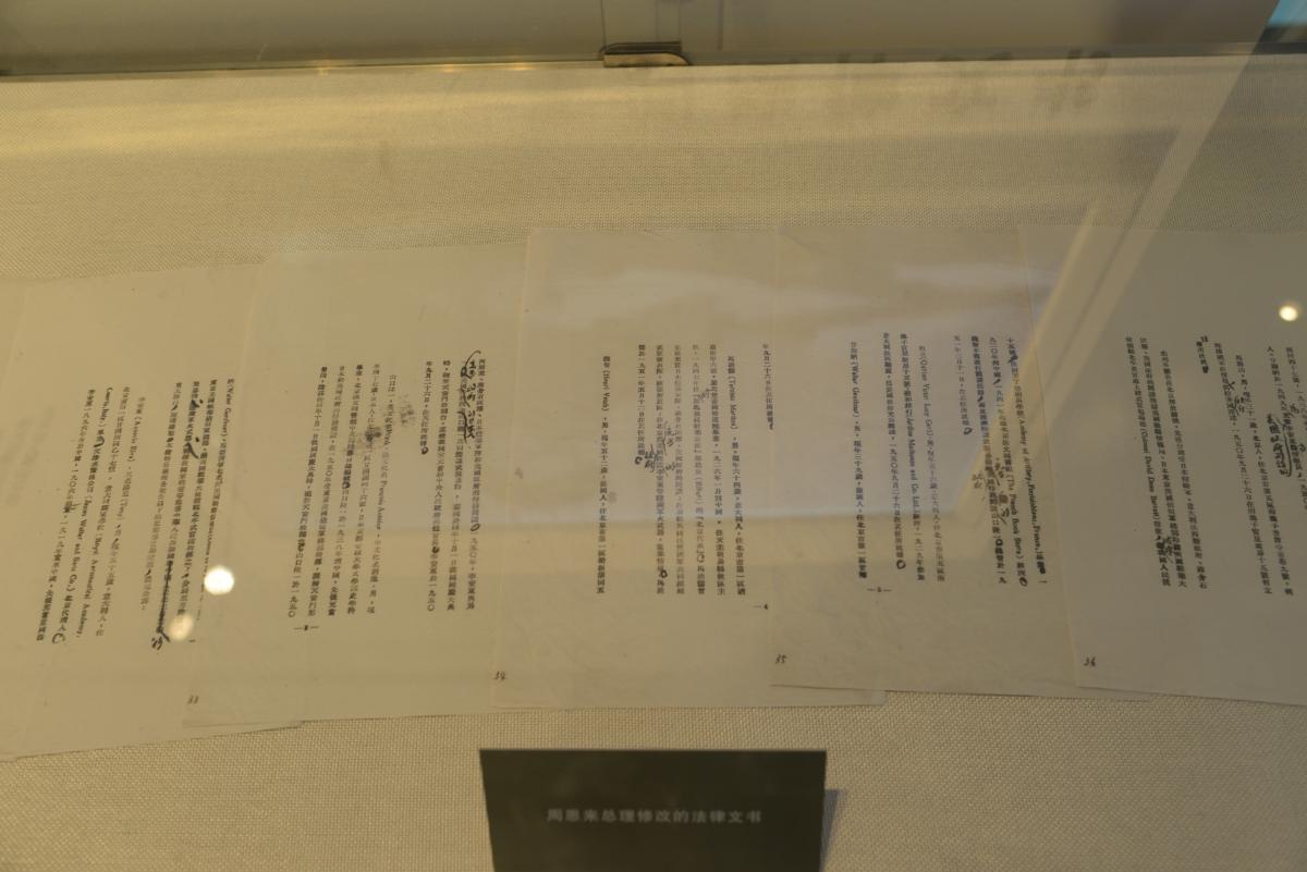 周恩来総理におかれては法律文書を御自ら修正された文書のレプリカです。