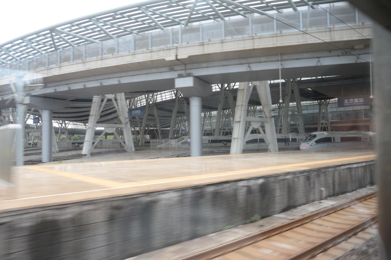 石景山駅などに停車しつつ、北京駅に向かいます。途中、北京南駅周辺で高速鉄道と並走します。そしてなんと、高速鉄道のターミナル駅である北京南駅を通過します。
