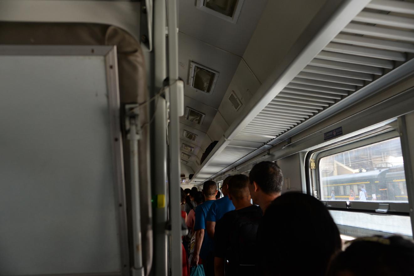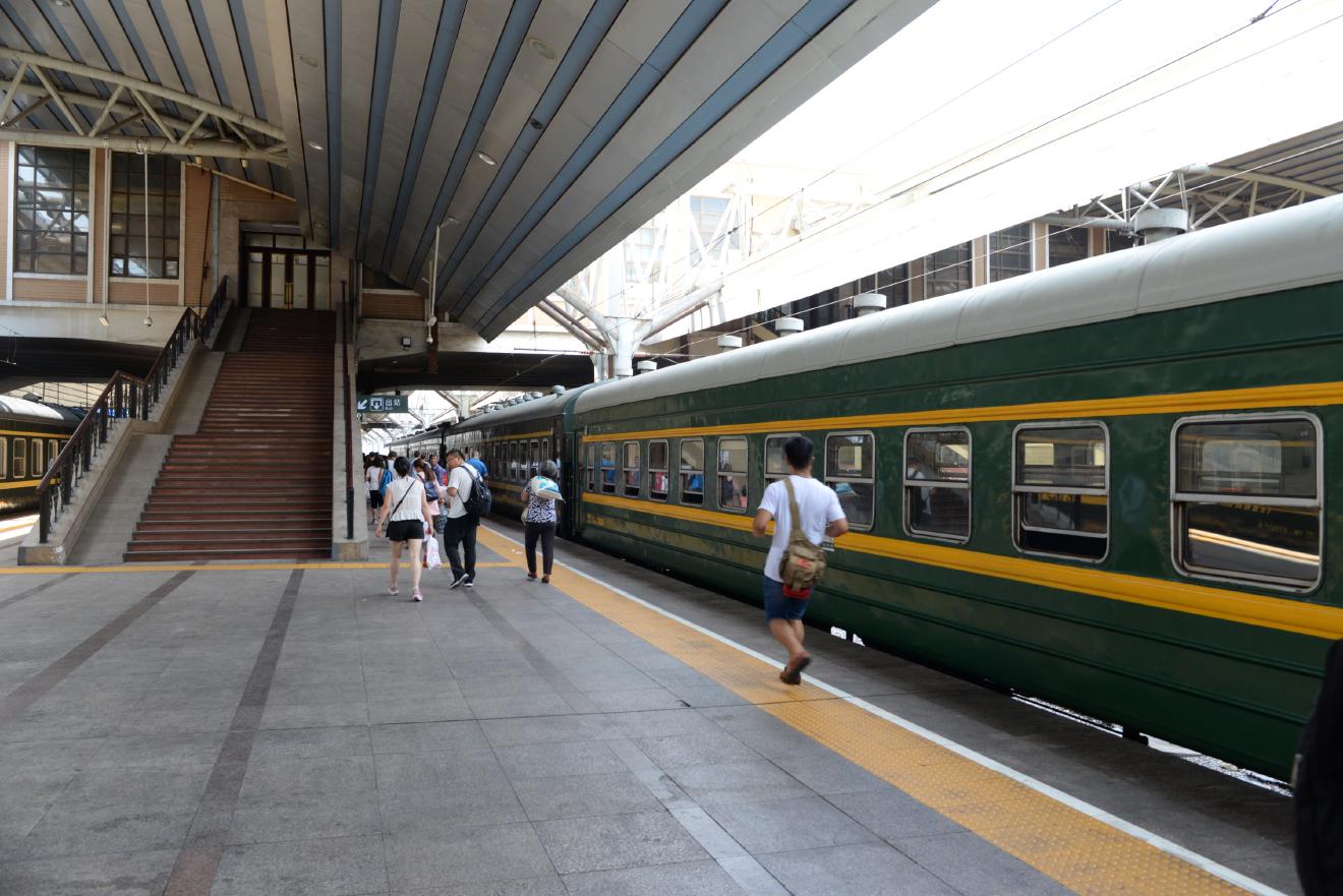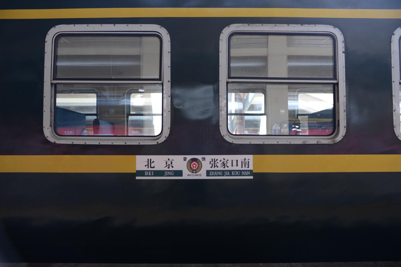 探索に行った日、三家店駅から鉄道で北京駅まで帰りました。硬座(2等車)で3元、予定通りだと50分ですが今回は途中でのろのろ運転の区間があって70分かかりました。途中、高速鉄道の一大ターミナル駅である北京南駅を経由しましたが、なぜか停車せず通過しました。利用者の利便性を無視する潔さを感じました。
