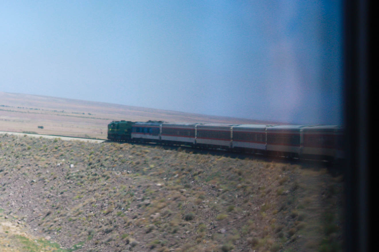 マシュハドからケルマーンへは列車で1本、10時間程度の旅でした。値段は寝台車で2000円程度だったと思います。夜行列車でした。 途中、ナマズ停車(夕方にある駅のモスクでお祈りするためだけの停車)もありました。 イラン人はフレンドリーなので車内で友人もできました。車両自体は中国製でした。最後尾には軍用車両もついていました(こういうのは撮ってはいけない)。